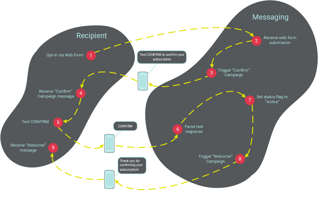 Double opt-In: In scenarios such as the website opt-in and verbal consent, Asiri.ai will send an additional an opt-in message to the subscribed number with option to respond with yes or no. Upon successful response received by the user the number will be enrolled for SMS notifications.